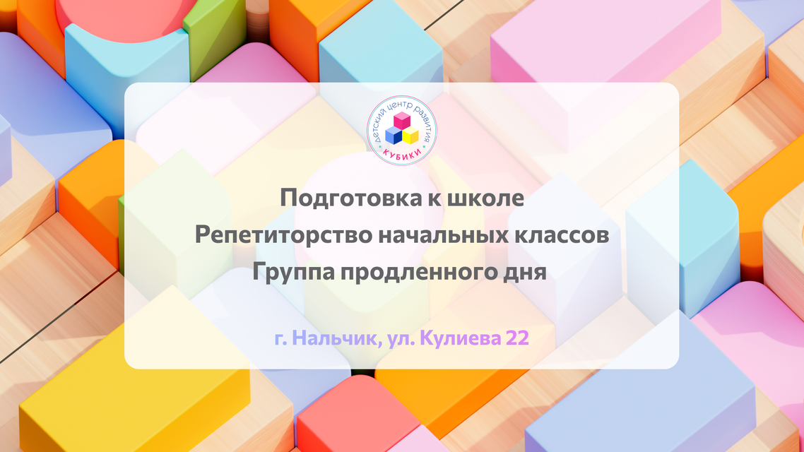🎲 Детский центр "Кубики" приглашает детей от 5 лет в группу подготовки к школе, а также учеников начальных классов на репетиторство и в группу продленного дня.
